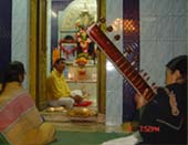 In 1926, the work of construction was taken up in the adjacent land of the Kali temple and Vasanti Puja was performed for the first time. In this very place were manifested different stages of concentration and particular acts of spiritual practices on the blessed body of Ma. Each particle of dust of this Ashram is indeed full of luster.